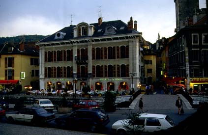I got to Annecy around lunchtime and found a very nice little restaurant with outdoor seating near Lake Annecy (no view of the lake though). I asked to sit outside, but had to indicate "sans soleil" to get a table with an umbrella. I had a delicious chicken dish with mustard, and caught my breath. You should understand that at this point I hadn't slept for over 24 hours and had spent 7 hours on a plane, so I was very tired. Also, I was disappointed to find all the new development around Annecy that one had to drive through coming in.