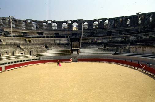 The next morning I had breakfast in the hotel, including some vile looking orange juice (it was such a dark orange) which turned out to be delicious, and then proceeded on toward Arles, site of a large Roman colosseum. The weather began to turn cloudy which cooled things off considerably, but ultimately turned to rain and incipient depression, but I'll get to that later.
