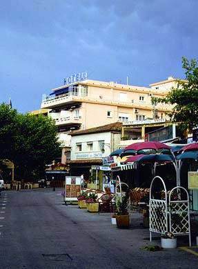 I finally reached the Riviera at a town called le Lavendou and stayed in a hotel on the road at the anti-beachward side of the older part of town. Le Lavendou looked like it would be very nice in season, but it was nearly raining by this time and the town was pretty dead. I had an incredibly good variation on Cole Slaw, I think made with "celery root", in a little food shop, and a definitely bad dinner nearby later.