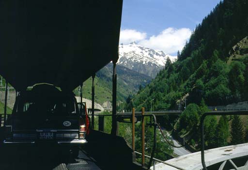 Grindelwald was in the next major East-West valley north in Switzerland so I had to go through the mountains to get there - literally. I took a train-tunnel (the ---) where you put your car on a train, driving it on yourself, and ride in your car as the train goes through the tunnel, about -- miles long. It didn't take very long and I was approaching Interlaken before lunch time. From there you go up into a another smaller valley to Grindelwald.