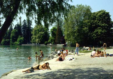 After lunch, though, I walked over to the lake and found a beach with topless French babes sunbathing. This perked up my spirits considerably. I was also close to the old town at this point and the new development was already out of the way. I walked along the lake and visited the "Jardin de L'Europe" (?), a gorgeous garden and arboretum along the lakeside.