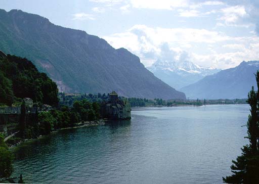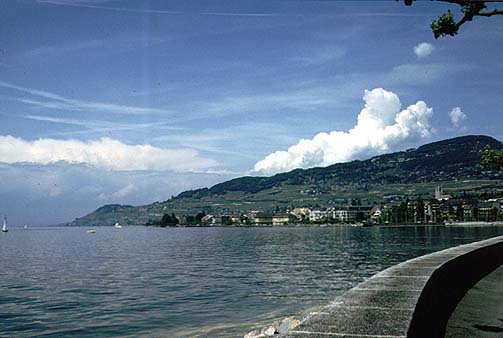 It's not far from Gruyere to the east end of Lake Geneva and I drove along the north shore by Chateau de Crillon, an often photographed castle on a little peninsula in the lake. Apparently I should have visited it but I didn't for some reason, although I stopped nearby to walk along the lakefront. As has been the case every other time I've been to or seen Lake Geneva there was smog over the lake which made it difficult to get good pictures. The lake is pretty much surrounded by mountains that hold in the smog from Geneva, Lausanne, and the other cities in the region.
