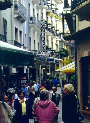 I found a temporary parking place and set out to find a hotel. On a short pedestrian-only street near the lake I found the Hotel Moderno which looked pretty nice. After checking in, I asked where I could park for the night and they gave me a little map and indicated the closest city lot. With some difficulty, I negotiated my way through the narrow streets to the lot and walked back.