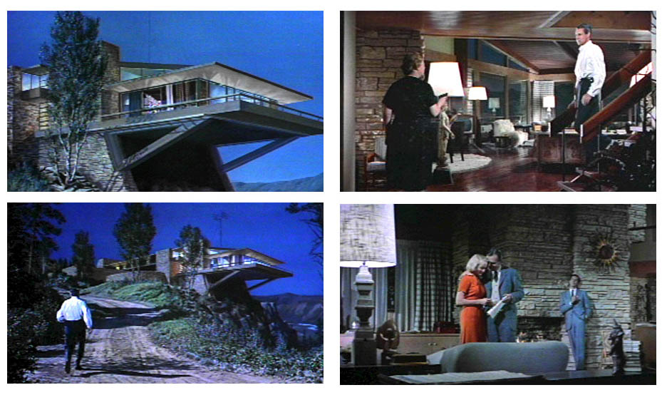 Here is yet another new house plan. This concept was derived from the house at Mt. Rushmore in the Hitchcock movie North By Northwest, which has always fascinated me. That house was not a real Frank Lloyd Wright house (I'm a big FLW fan), but the script called for a house "in the Frank Lloyd Wright style". Here I've made it much smaller and largely eliminated the cantilevered living room, replacing it with a simpler cantilevered deck to suggest the same effect.