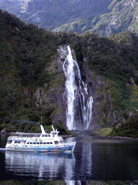 Bowen Falls. One of two 500ft waterfalls that cascade directly into the Sound. Their size is deceiving because of the scale of the surroundings.
