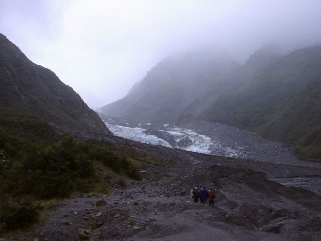 At the foot of Fox Glacier. See how the weather has turned bad again - I got quite wet here although my Goretex gear worked well.