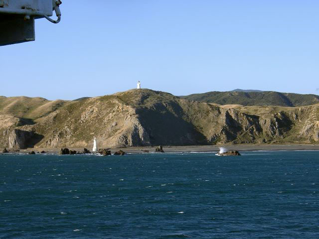 The lighthouses at the entrance to Wellington Harbor.